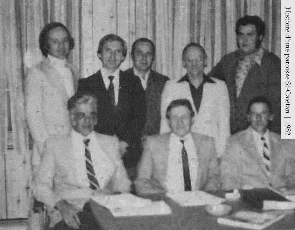 Assis: André Marcoux, maire | Eddy Lessard, secrétaire | Howard Jewett Debout: Jacques Marcoux | Michel Daigneault | Jean-Marc Plante | Georges St-Jacques | Murray Brown