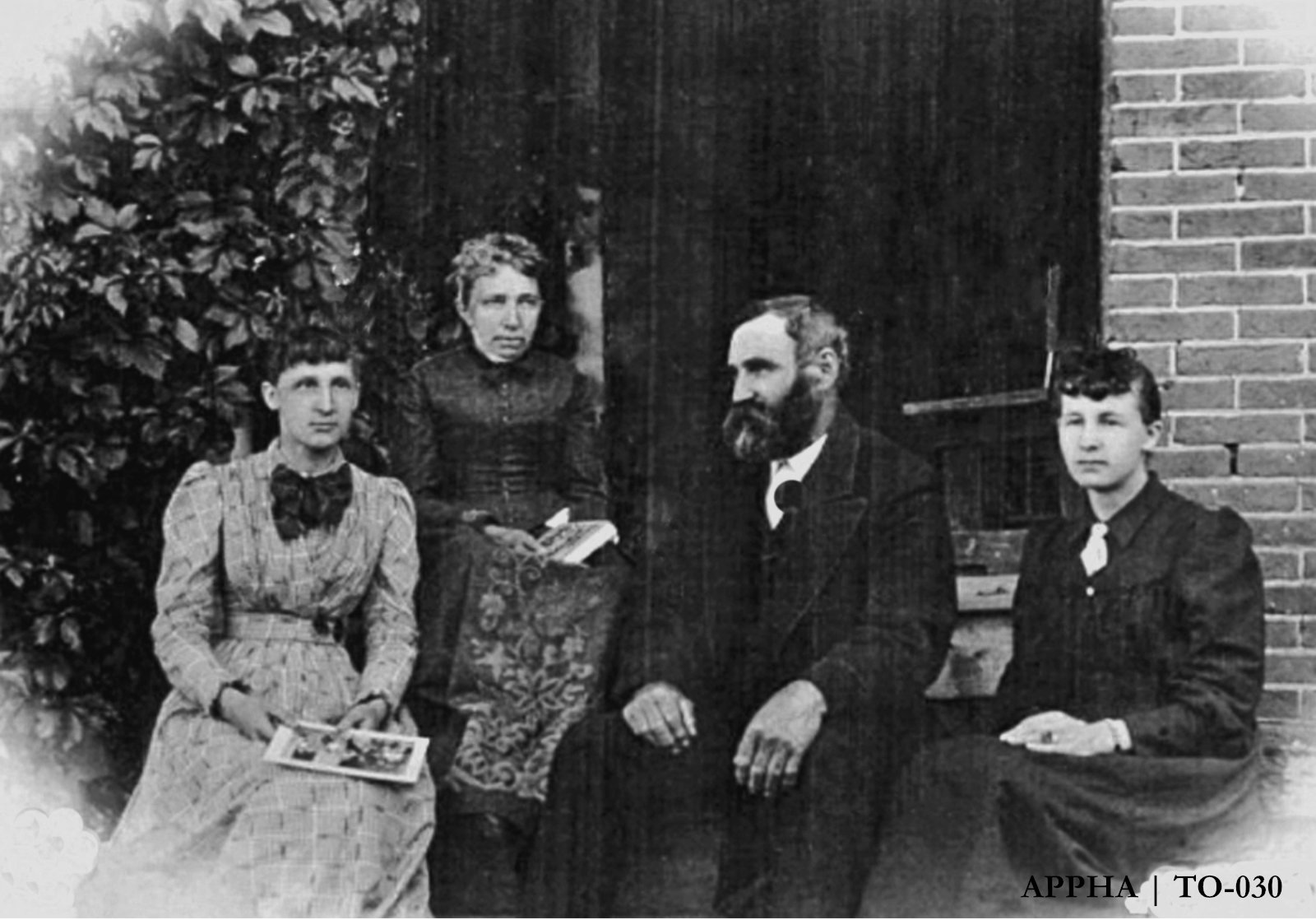Tuck family on the steps of the Pine Lodge, Knowlton Landing, 1910