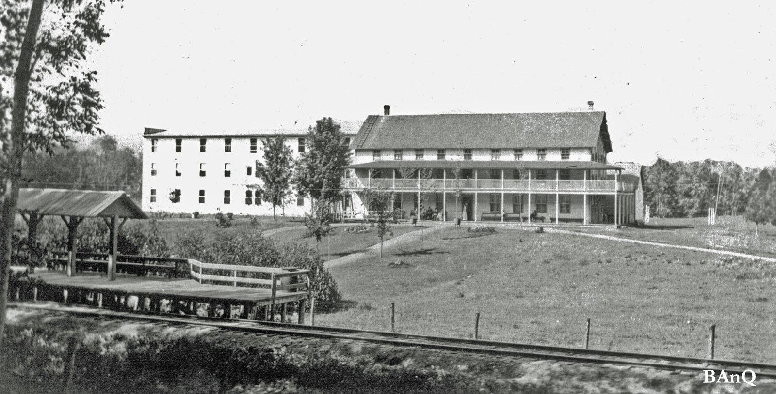Nathan Banfill’s discovery, in 1828, of a sulphur spring at the foot of Mount Peavey, led to the construction in 1875 of the Potton Springs Hotel, renowned for the healing properties of the water and its fine entertainment.