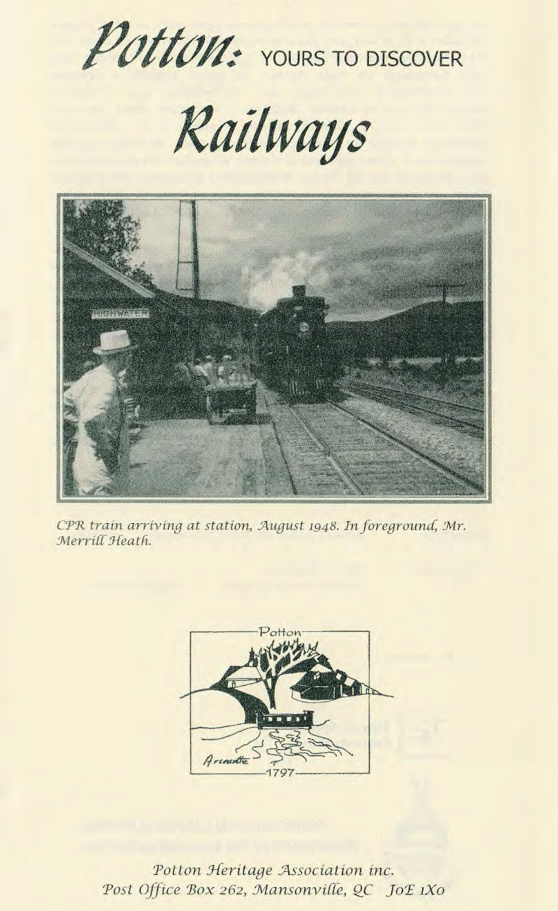 An important one was the South Eastern Railway which, after its promoters discarded a plan to build it through the Bolton Pass to Mansonville, opted for the West Farnham, Richford and Mansonville Station (Highwater) route to connect with the Connecticut and Passumpsic Railroad at Newport, Vt. Completed in 1873, this became Potton Township’s first railway.
